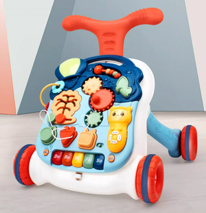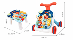 Introducing our versatile 2-in-1 Walker, a multifunctional baby essential. This innovative walker doubles as a sturdy support for little ones taking their first steps and easily transforms into a fun play table for interactive playtime.