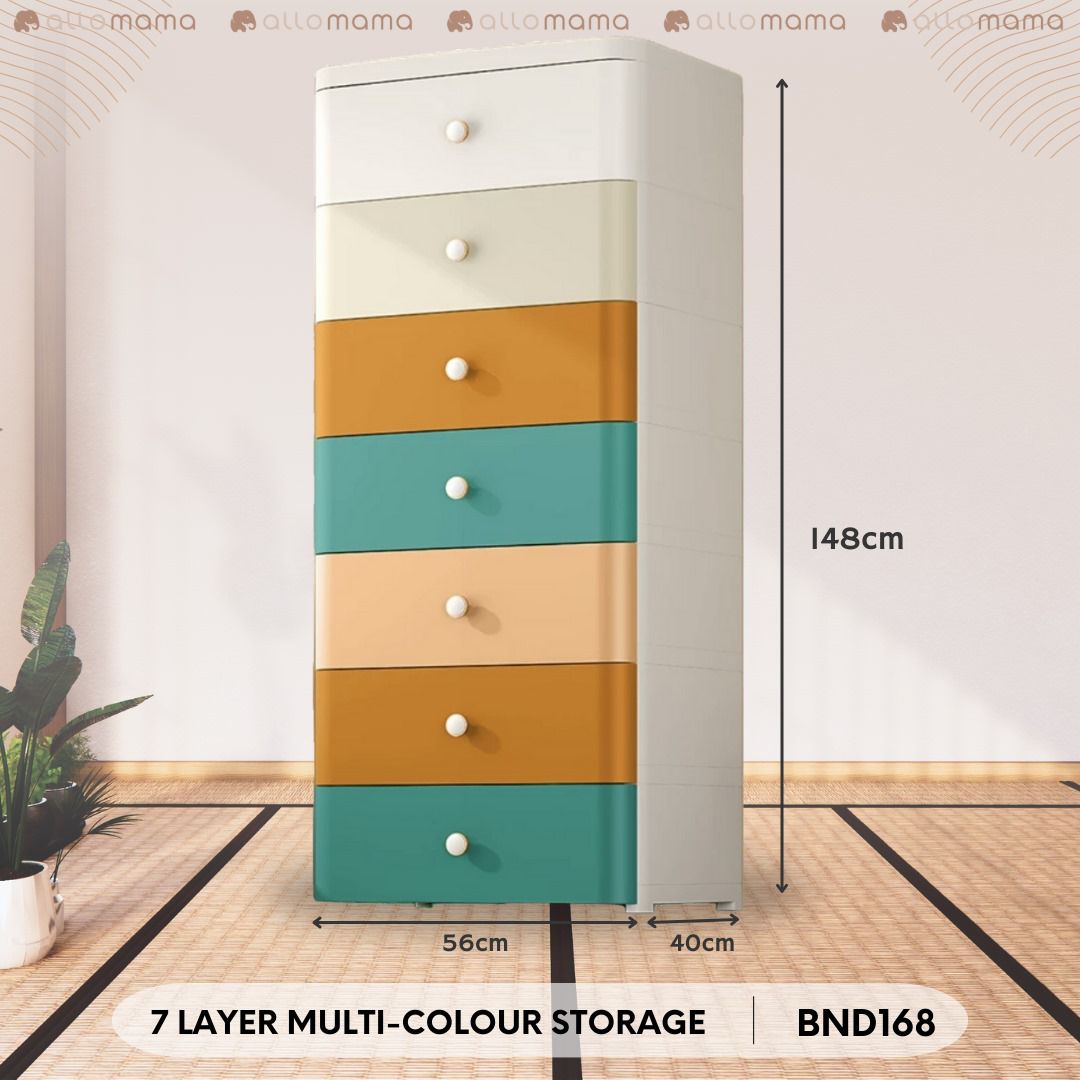 With a total size of 56 x 40 x 148 cm, this 7-layered drawer unit offers storage for all your child's essentials – from baby needs and clothing to toys and beyond.