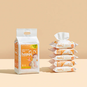 Hoppi Antibacterial Wipes are your germ-fighting heroes designed to kill 99.9% of germs. Suitable for hands, toys, and surfaces, they're gentle and alcohol-free. Additionally, these wipes are designed to be softer, thicker, and larger than the average baby wipes on the market, providing you with a cloth-like experience. Now you can clean more with just one wipe!