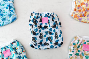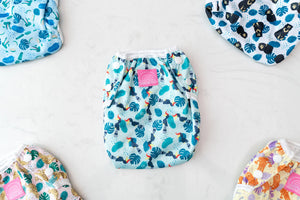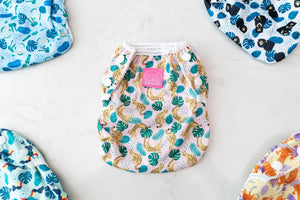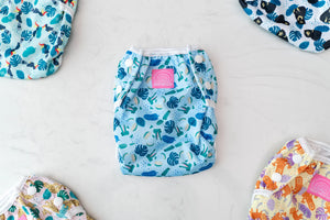 For soiled diapers, rinse off any solids, place swim diaper in a laundry bag and machine wash with non-bio laundry detergent on a gentle cycle at 35°C. Line dry or tumble dry on low and voila! Your swim diaper is ready for reuse.