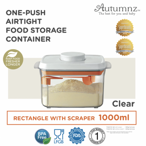 Autumnz One-Push Airtight Food Storage Container 1000ml/300g (Clear Rectangle With Spoon & Scraper)