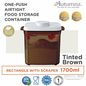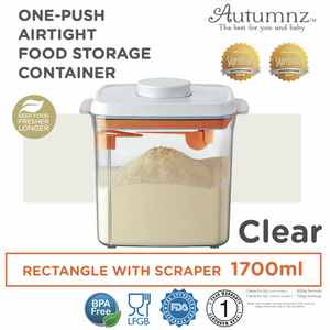 Autumnz One-Push Airtight Food Storage Container 1700ml/630g (Clear Rectangle With Spoon & Scraper)