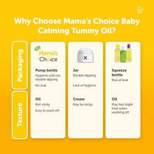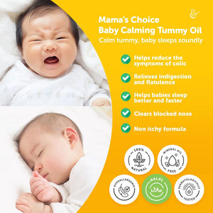 Help your little one overcome colic and tummy discomforts with Mama’s Choice Baby Calming Tummy Oil. Made from 100% natural ingredients, our tummy oil will help reduce colic symptoms, calm down your baby’s tummy, and have a more restful sleep!