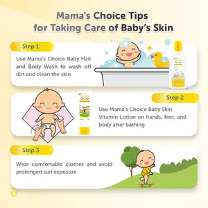 1. Use Mama’s Choice Baby Hair & Body Wash to wash off dirt and clean the skin
