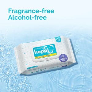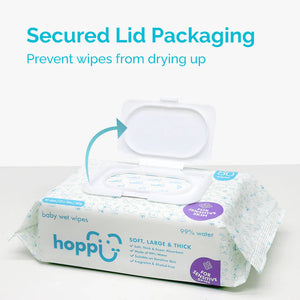 Introducing Hoppi Baby Wet Wipes: the award-winning choice for newborns and sensitive skin. With only 99% water and free from alcohol or fragrance, it is the purest wipes for gentle care. Additionally, these wipes are designed to be softer, thicker, and larger than the average baby wipes on the market, providing you with a cloth-like experience. Now you can clean more with just one wipe!
