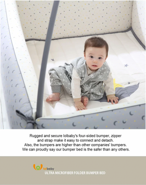 Korea LOLBaby Bumper Bed with Highest Safest Bumper Guard. New generation of Baby Cot, Crib, Playard, Playpen and Playmat. Bumper Bed comes in Microfiber and Cotton Fabric and in various designs.