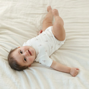 Crafted with tiny in mind, our organic Bodysuit in short sleeves is a favourite in every mini wardrobe. Thoughtfully designed with side snaps at the neckline for easy dressing, they are weaved with the perfect blend of bamboo + organic cotton fabric that is buttery soft, naturally antimicrobial and always breathable.