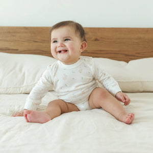 Cute for day, cosy for night. Our luxuriously soft bodysuits are designed with long sleeves for comfort, and side snaps along the neckline for easy changing. Made from bamboo + organic cotton blend for extra softness and breathability.