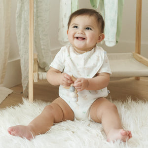 Crafted with tiny in mind, our organic Bodysuit in short sleeves is a favourite in every mini wardrobe. Thoughtfully designed with side snaps at the neckline for easy dressing, they are weaved with the perfect blend of bamboo + organic cotton fabric that is buttery soft, naturally antimicrobial and always breathable.