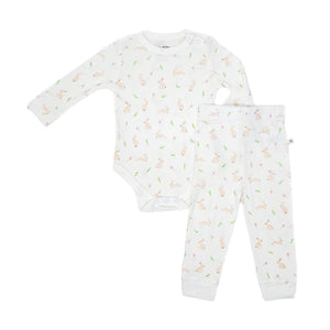 Our long-sleeve Bodysuit features side snaps along the neckline for easy changing, while our super soft Pants incorporate wide elastic waistband and stretchable cuffs to keep tiny legs comfy. Designed for versatile mix-and-match.