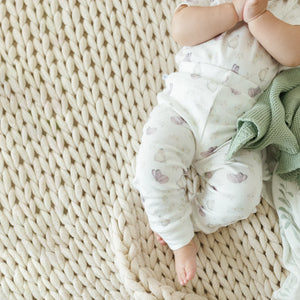 Our bamboo pants are the perfect choice for your baby's sleeping, crawling, and on-the-go needs. Made from soft-to-the-touch bamboo viscose and organic cotton fabric, these pants are gentle on your baby's delicate skin while providing ample space for cute little bums in diapers.