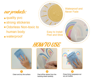 Transform your child's space into a vibrant wonderland with our Colorful Rainbow Room Stickers. Bursting with a spectrum of hues, these enchanting stickers instantly infuse joy and imagination into any room.