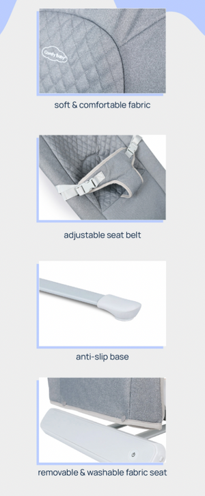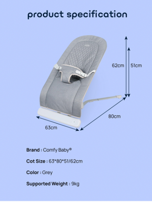 The Comfy Baby Lyra Swing combines safety and comfort for your little one, featuring a secure harness and plush seat padding. With soothing melodies and gentle swinging motions, it calms and entertains babies. Its compact design makes it ideal for small spaces. Perfect for ensuring relaxation and peace of mind for both baby and parents.