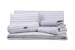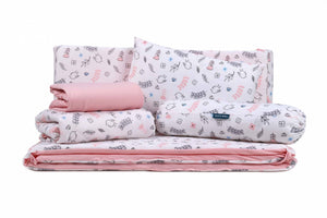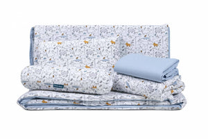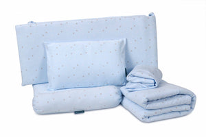 Crafted with 100% jersey cotton fabric, this bedding set ensures a soft and breathable touch for a restful sleep. The Dupont™ Sorona® fibre filling offers superior fluffiness and durability, maintaining its shape night after night. Perfectly designed to fit your baby's cot, this set combines functionality with style, providing a safe and snug environment for your little one.