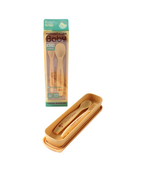 A baby spoon set consisting of two feeding spoons which can be divided according to the type of baby food or feeding time, and a spoon case that can be kept hygienic even when going out, so the baby can adapt to baby food This product is to help you.