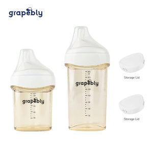 The feeding bottle can be changed to a storage bottle by changing the storage lid. The storage bottle can be used as a breast milk storage bottle, snack storage bottle and many more.