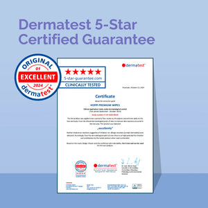 Hoppi™️Premium Sensitive Skin Wipes are specially designed for newborns and clinically tested by German dermatologists with Dermatest® 5-star certification, guaranteeing safety for sensitive skin, including babies. With 3.5x more hydration from over 99% pure EDI water, they are free from parabens, alcohol, and harmful chemicals. Gentle enough for oral use, non-irritating for daily use, and strong with a tear-resistant, zero-leakage design.