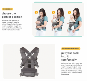 - 3 carrying positions offer baby optimal support and a change of scenery all while keeping them close