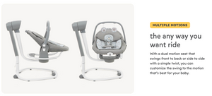 - Dual-motion swinging: front-to-back or side-to-side movement
