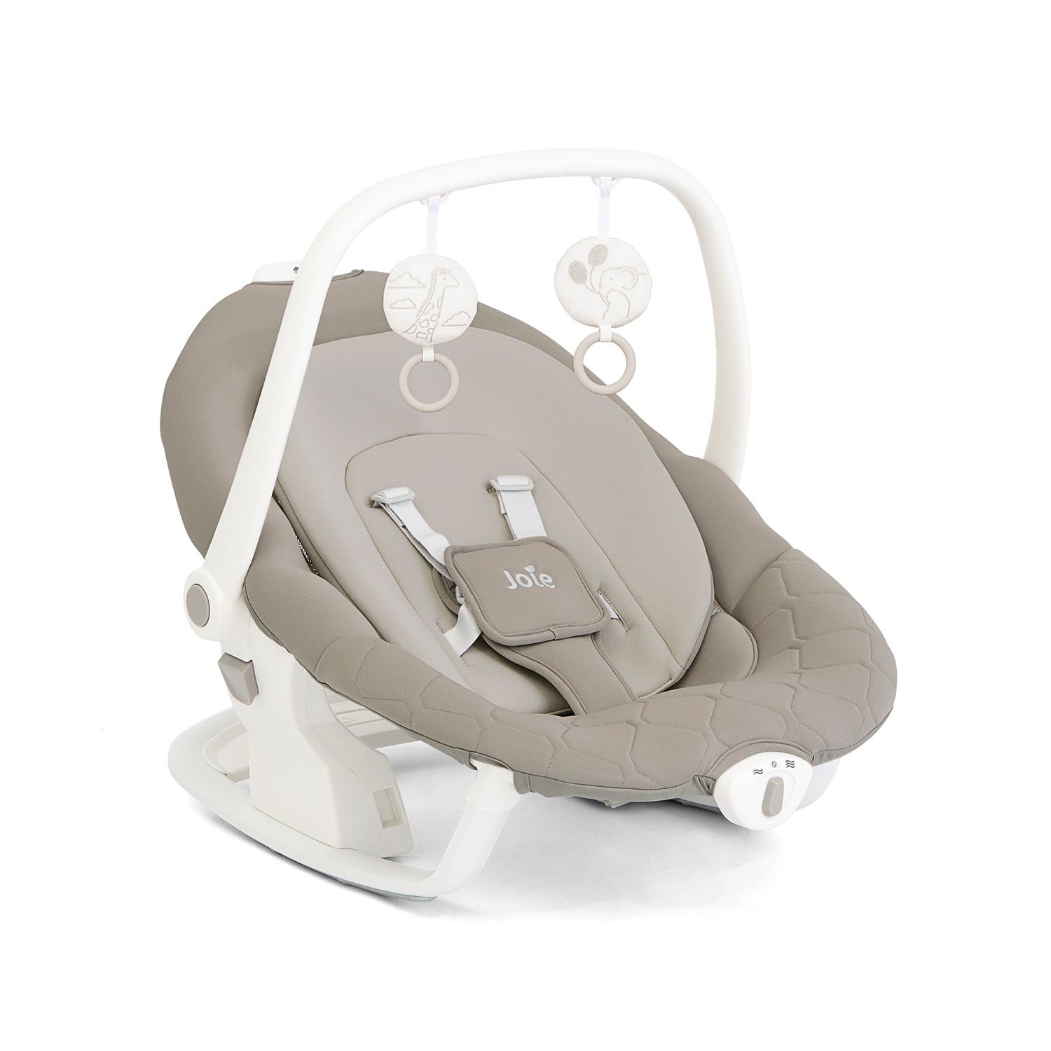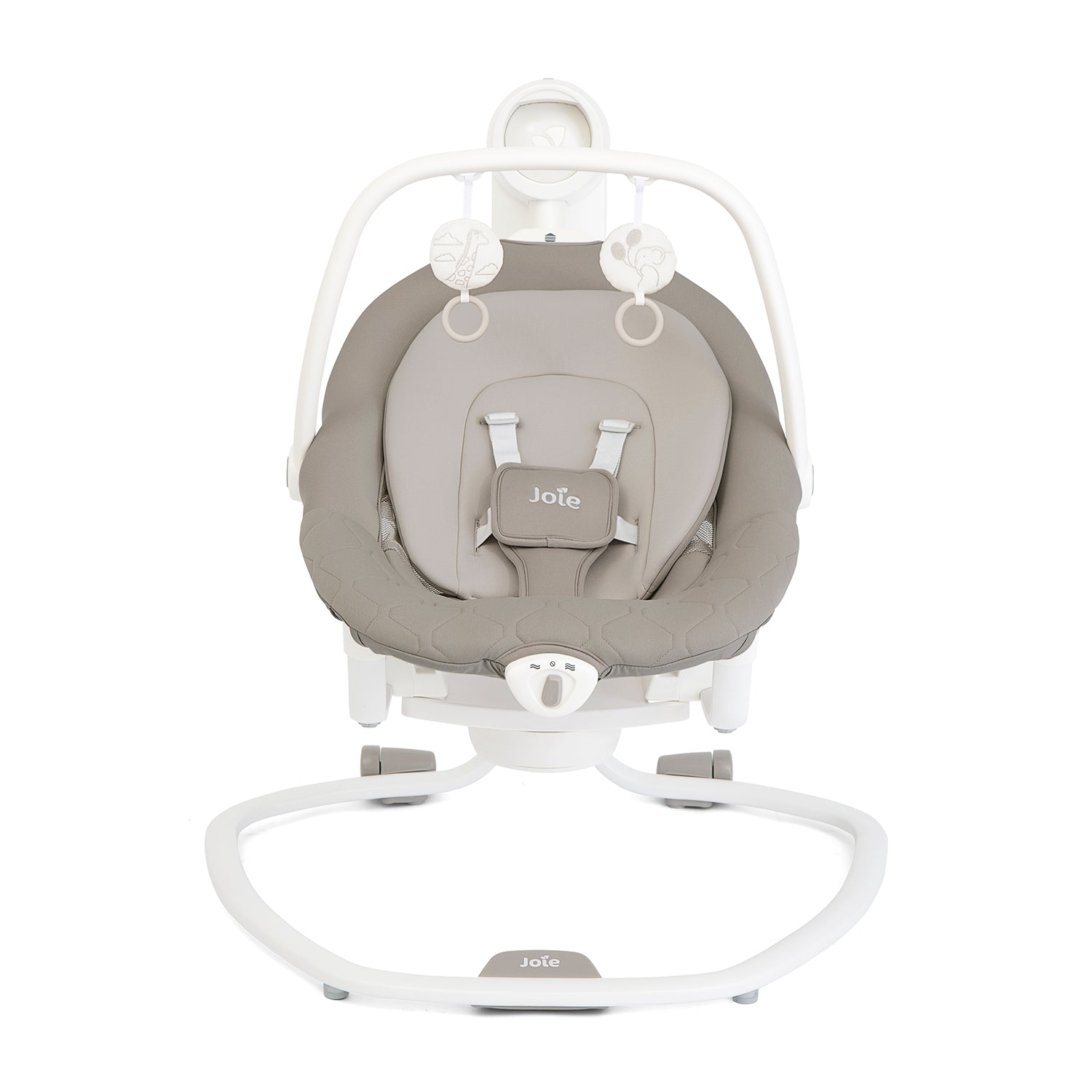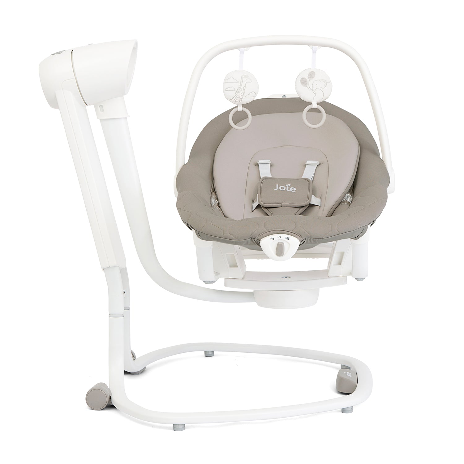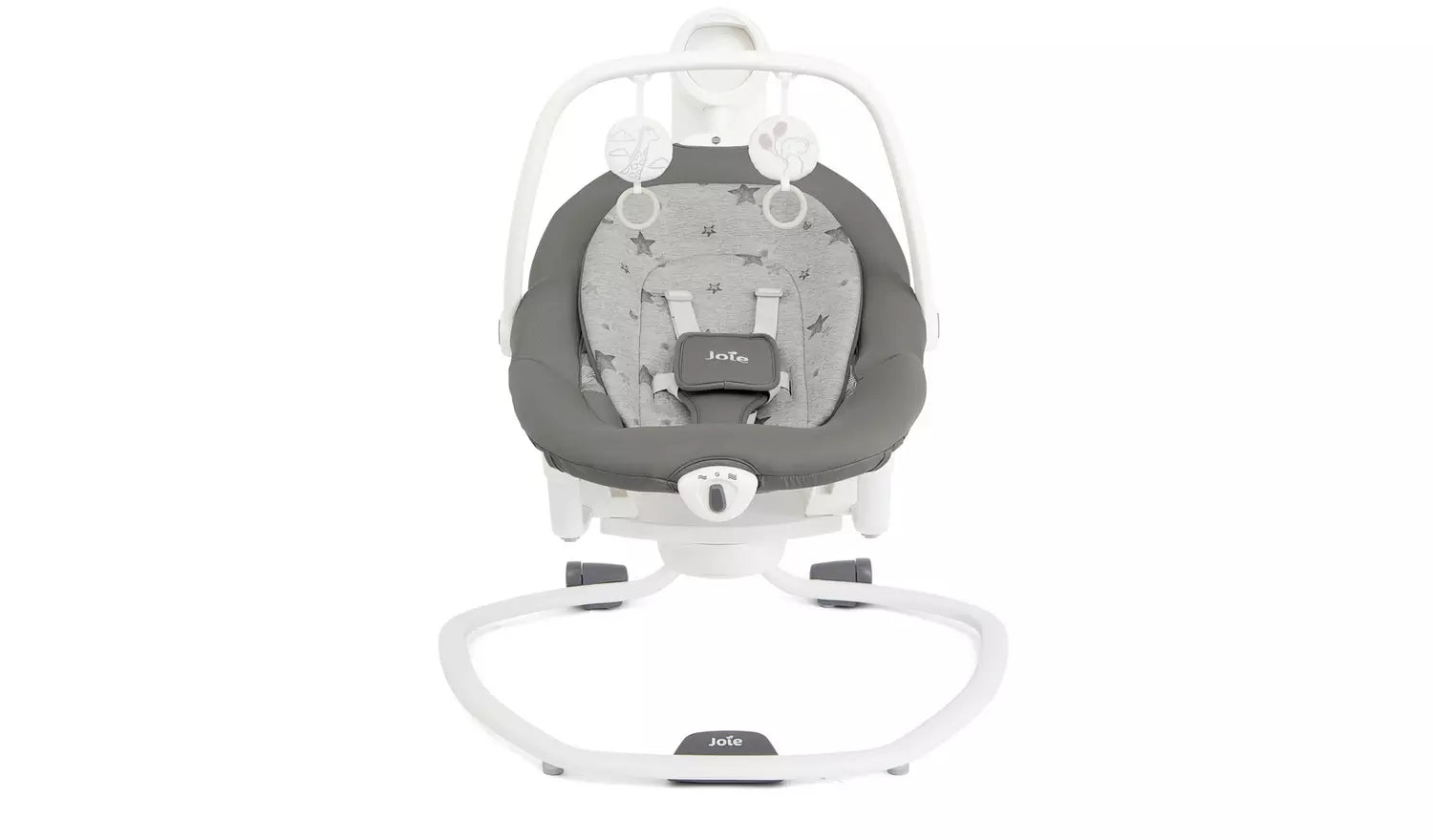 With six swing speeds, two vibration settings, and a choice of five classical lullabies and five nature sounds, the Joie Serina Swing/Rocker creates a calming atmosphere for your little one. The three-position reclining seat ensures maximum comfort, while the SoftTouch 5-point harness provides a secure and cosy space. A soft glow nightlight with four brightness settings adds extra reassurance for nighttime soothing. The pivoting toy bar with two plush toys keeps babies entertained, and the removable, washable seat pad and body support ensure easy maintenance.