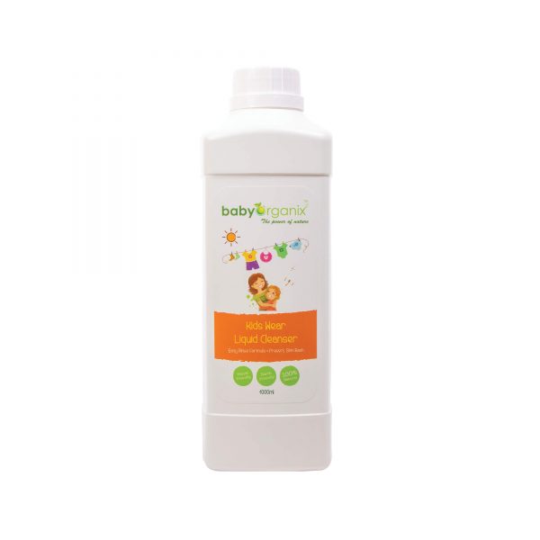 - Babyorganix Kid’s Wear Liquid Cleanser It’s specifically formulated to be tough on stains that clings to kid’s clothing.