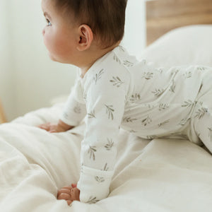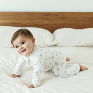 Because we know fumbling around - especially in the middle of the night! - isn’t fun, our Growsuits are designed with a full two-way zipper for quick and easy diaper changes. Also a zipper guard at the chin, just in case. Practical for parents, SUPER comfy for babies.