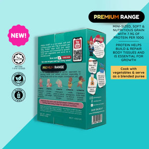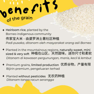 FRESH START is a mini-sized, soft and nutritious heirloom grain from the Borneo Highlands with 7.9g of protein per 100g. Protein helps build and repair body tissues, and is essential for growth. Cook with vegetables and serve as a blended puree.