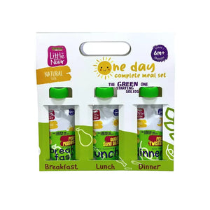 All Natural One-Day Complete Meal Set for Babies from 6+ months old. Each set comes in Breakfast, Lunch & Dinner. Ready to eat directly from the pouch.