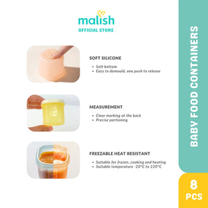 Easily store & carry your baby's food with Malish Baby Food Containers made of BPA-Free food grade silicone, complete with a stable tray so that the container is more organized, stable & easy to carry. These soft, durable & airtight silicone containers are suitable for storing puree, porridge, snacks and others. With a special tray, all containers remain neat & not easy to spill even when taken outside.