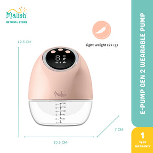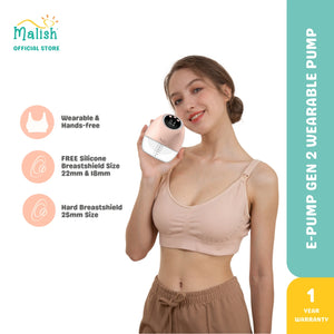 Enter a new era of expressing with a perfect balance of suction & nipple stimulation with a wearable, handsfree, wireless and rechargeable breast pump. This Malish E-Pump Gen 2 wearable breast pump keeps milk flow at an optimum and gently adapts to your nipple size & shape. 2 size silicone breast shiled were given as a free gift also give a freedom to all mommies to buy without any doubt and choose their size perfectly.