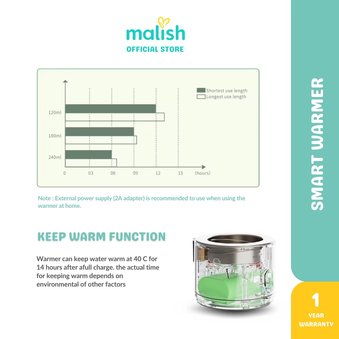 Malish Smart Warmer; a smart warmer device that allow you to heat up your baby's milk precisely, safe & effortless. It gives you a more stable heat transfer and avoid over heating that could make your breast milk go to waste. It fits most of wide neck bottles. If it’s not compatible with your model of bottle there are adapters to make the perfect fit. Talk to us if you have doubts!