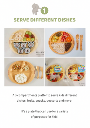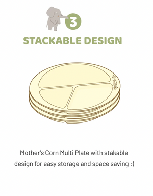 Mother's Corn Multi Plate offers 3 compartments platter to serve different dishes and fruits with sufficient serving size for kids.