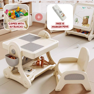 Inclusive Block Toys: The set includes 157 block toys, offering children a creative outlet for imaginative play and building. These blocks can be used on the desk surface or stored within the storage compartments.