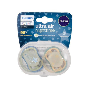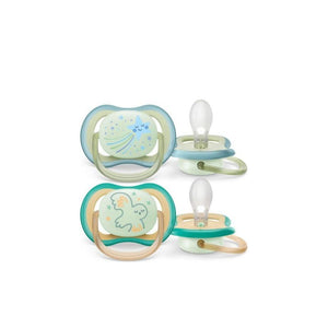 Soothe with the comfort of air. The Philips Avent ultra air has extra-large holes to keep skin dry. It has a glow-in-the-dark button so you can see it when the lights are out. Available in various colors and designs.