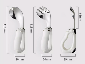 Make mealtime fun and easy with the Scoornest Handheld Spoon and Fork Set, specially designed for little hands learning to self-feed.