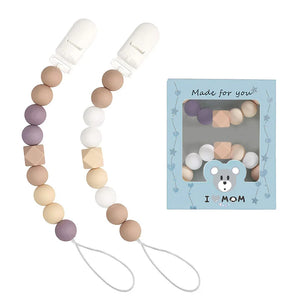 Our silicone pacifier clip is a practical and stylish accessory designed to keep your baby's pacifier safe and within reach. Crafted from high-quality silicone, it's safe, durable, and easy to clean. The secure clasp provides a strong grip, while the flexible loop accommodates various pacifier styles. With vibrant colors and a modern design, this clip is both functional and fashionable. Say goodbye to lost pacifiers and ensure a happy, contented baby with our reliable silicone pacifier clip.
