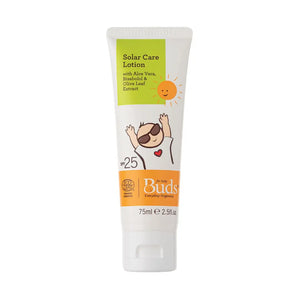 Let your little one have fun in the sun without the woe of painful sunburn with our SPF25 Solar Care Lotion. Our formulation is packed with Titanium Dioxide which reflects UVA and UVB rays. Natural emollients Sunflower, Olive and Jojoba Oils and Shea Butter offer deep moisturisation while Aloe Vera and Fructan hydrate and calm sun stressed skin. Antioxidant rich Olive Leaf Extract and natural Vitamin E offer protection against free radical damage and Bisabolol soothes inflammation. So go out and get your daily dose of Vitamin D but don't forget baby's hat!