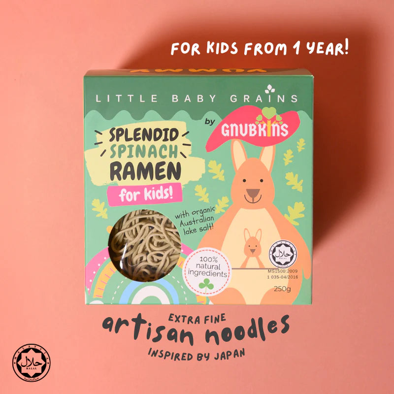 This ramen contains spinach which is splendidly endowed with essential minerals and aids hydration! Noodle length has been customised for kids so no cutting is required. Easy to cook, cooking on a stovetop takes about 4-5 minutes.