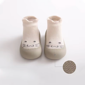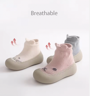 Made from soft, breathable materials, they ensure a snug fit while allowing freedom of movement. The flexible rubber soles provide grip and protection for little feet, ideal for both indoor and outdoor play. Easy to put on and take off, these sock shoes are perfect for active toddlers, offering a seamless blend of style, functionality, and comfort.