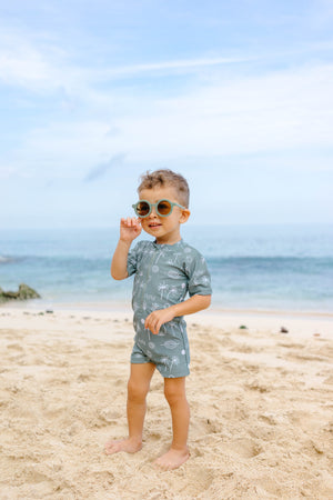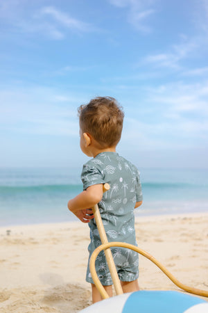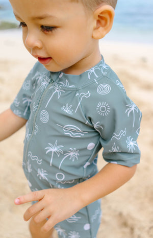 Our UPF Protected Swimwear in Boho Breeze offers both style and sun protection for your little one's fun-filled beach days. Crafted from a durable blend of nylon and spandex/polyester, this swimwear ensures both comfort and safety under the sun.