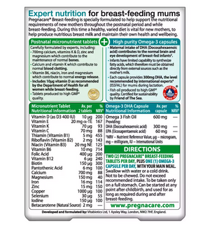 Pregnacare Breast-Feeding is specially formulated to help support the nutritional requirements of new mothers throughout the postnatal period and while breast-feeding. During this time a healthy, varied diet is vital for new mothers, to help produce nutritious bresat mill and maintain their own health and wellbeing.