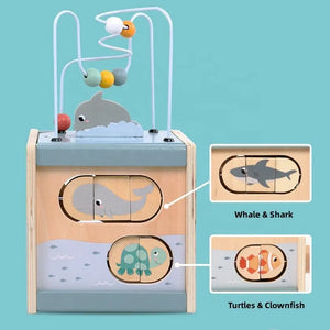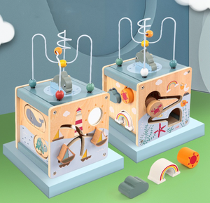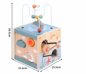 Engage and entertain your little one with our Wooden Activity Cube, a world of fun and learning packed into one charming cube. Each side is filled with exciting features to stimulate your toddler's senses and develop their fine motor skills. With vibrant colors, sturdy wood construction, and a range of activities, this cube promises hours of exploration and discovery for your curious toddler. Learning has never been this much fun!