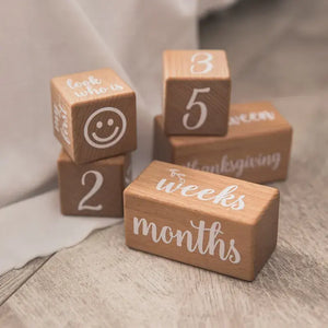 Celebrate your baby's growth and milestones with our elegant Wooden Milestone Blocks. Each finely crafted blocks, complete with a pouch bag for safekeeping, lets you document those precious moments in a charming and timeless way. Watch your little one grow month by month with this cherished keepsake.